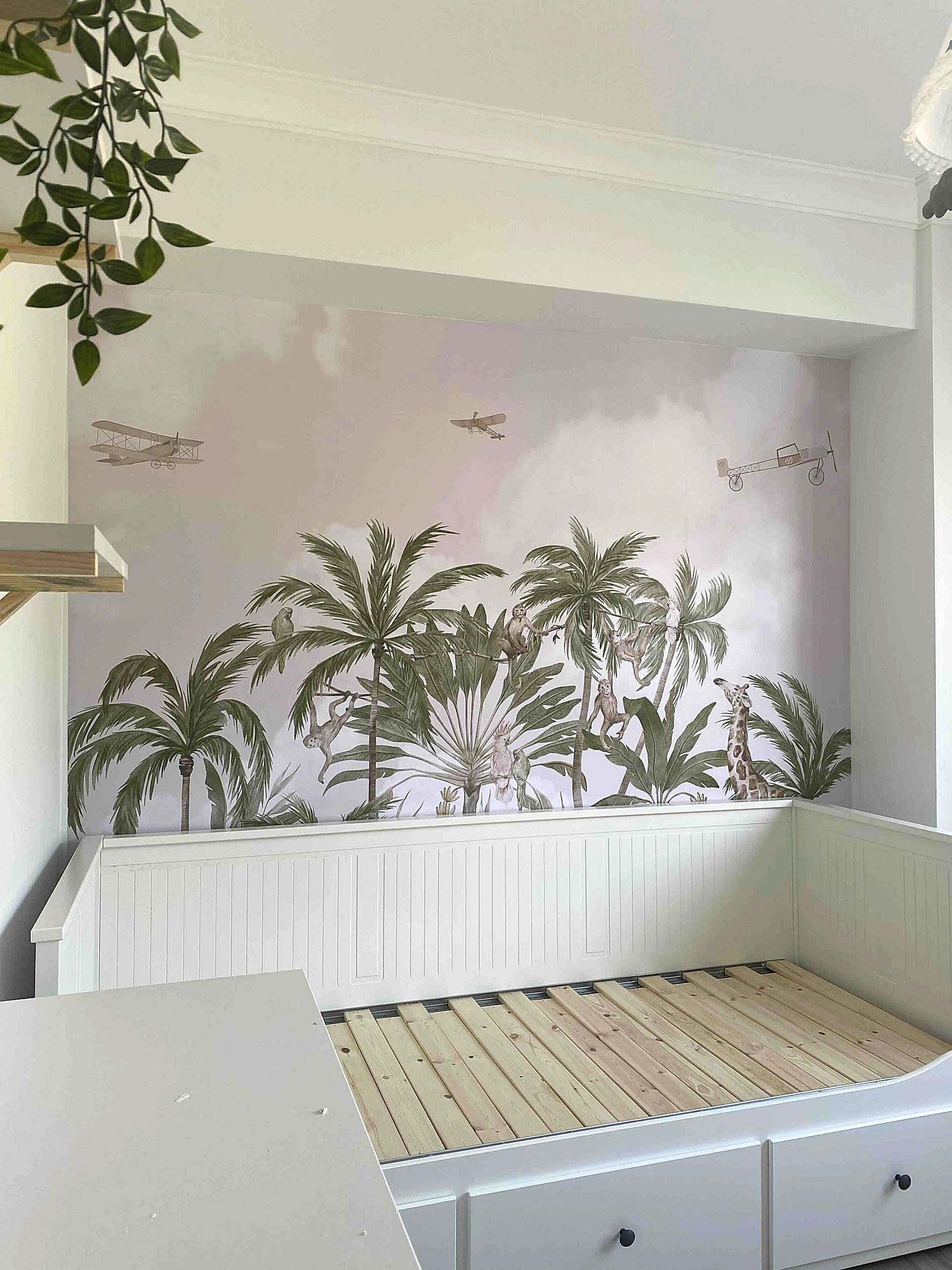 Çocuklar için tropikal bitkiler, hayvanlar ve yeşil tonlarıyla dolu duvar kağıtları, doğayı seven çocuklar için mükemmel bir seçenektir. Bu tasarım, çocuğunuza çevre bilincini aşılayabilir ve doğaya olan sevgisini artırabilir. Canlı renklerin çocukların zihinsel gelişimine katkı sağladığı bilinir.