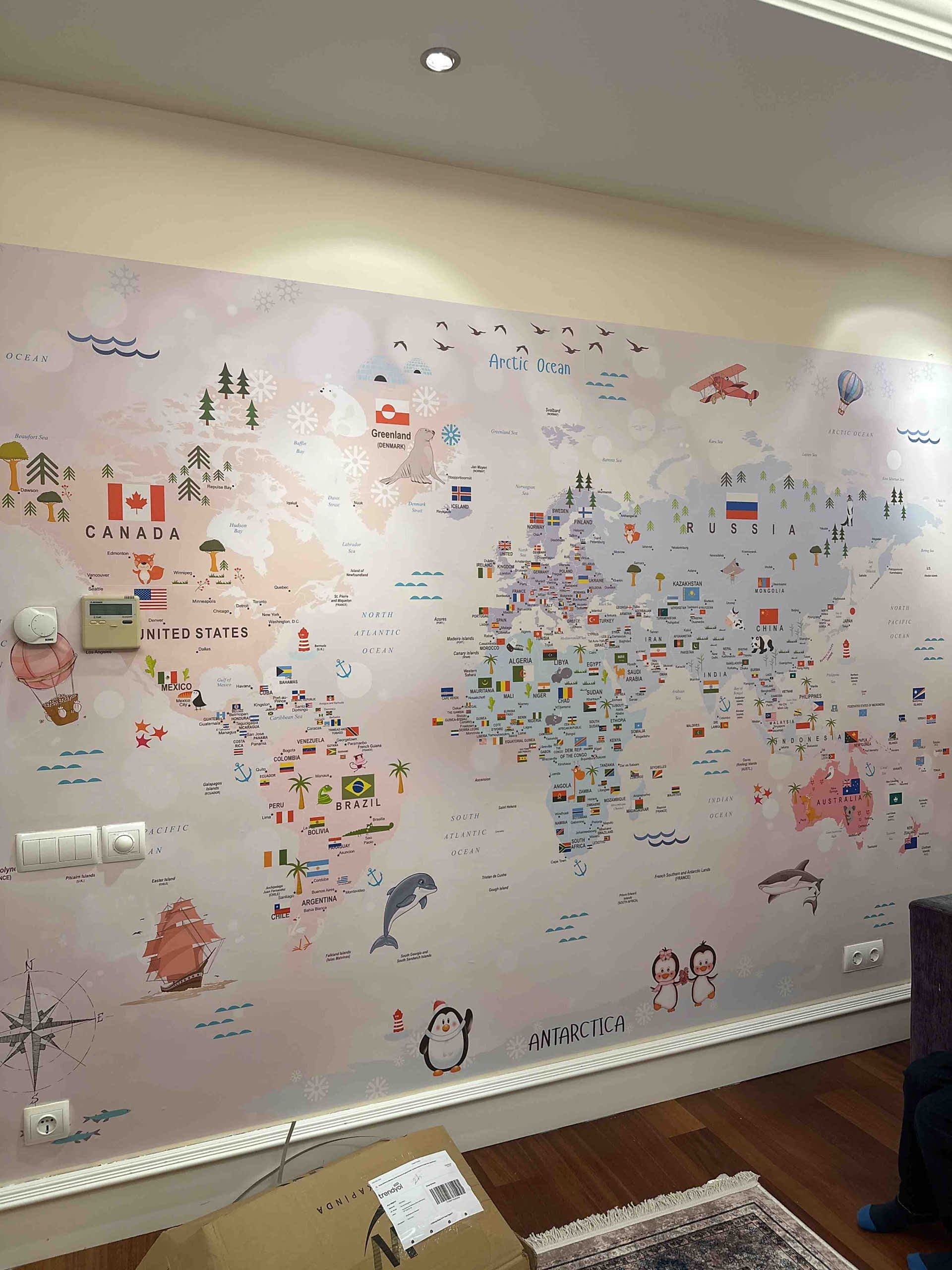 Çocuğunuzun dünyasını renklendiren harita desenli duvar kağıdı, odalarını eğlenceli hale getirir ve yaratıcılıklarını besler.